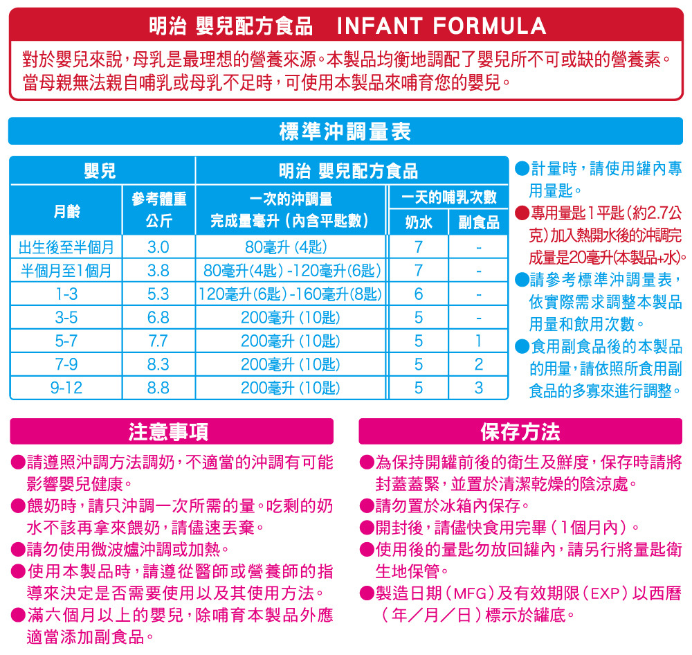 品名:【Meiji 明治】嬰兒配方食品0~1歲